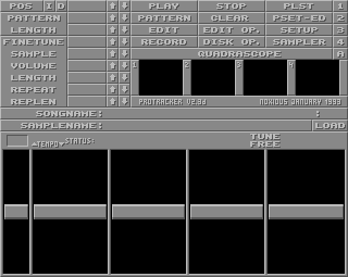 For its display setup, ProTracker separates the background from the moving parts. The main screen has four colors and contains all the controls: