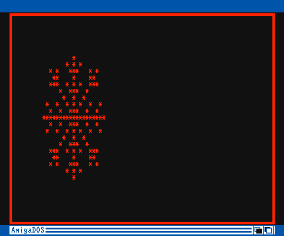 dc.w 320 ; x coordinate (2 bytes) dc.b 128 ; y coordinate (1 byte) dc.b '*',0 ; text, null-terminated dc.b 1 ; continuation byte not 0 = more text chunks to come dc.w 328 ; next star at 328, 136 dc.b 136 dc.b '*',0 dc.b 1 ... dc.w 384 ; final star at 384, 192 dc.b 192 dc.b '*',0 dc.b 0 ; continuation byte is 0 = end of alert